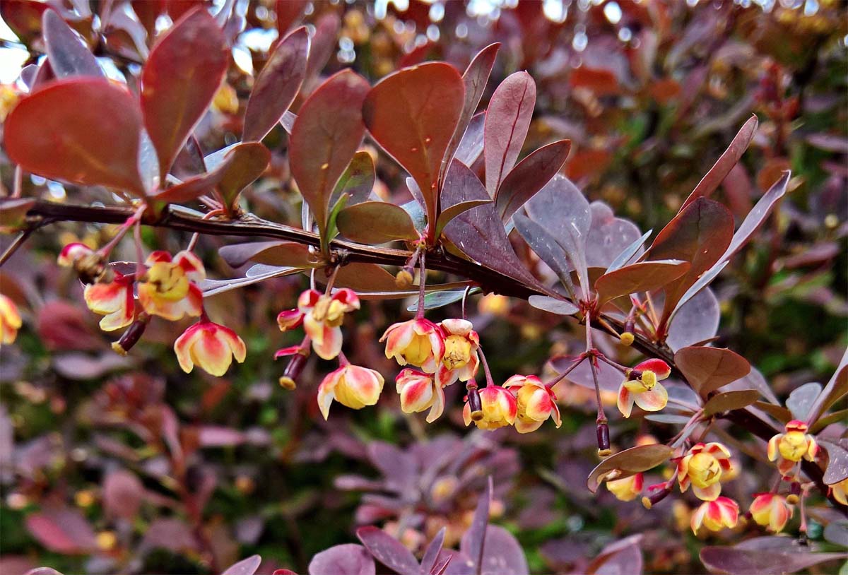 Berberys thunberga Atropurpurea Nana – odmiana dorastająca do 50 – 100 cm o pięknych, purpurowych liściach. Kwitnie w maju i czerwcu wytwarzając żółte kwiaty, na miejscu których z czasem pojawiają się owoce. Jest mało wymagający i bardzo łatwy w uprawie. Polecany do uprawy w donicach lub do kompozycji z bylinami i trawami.
